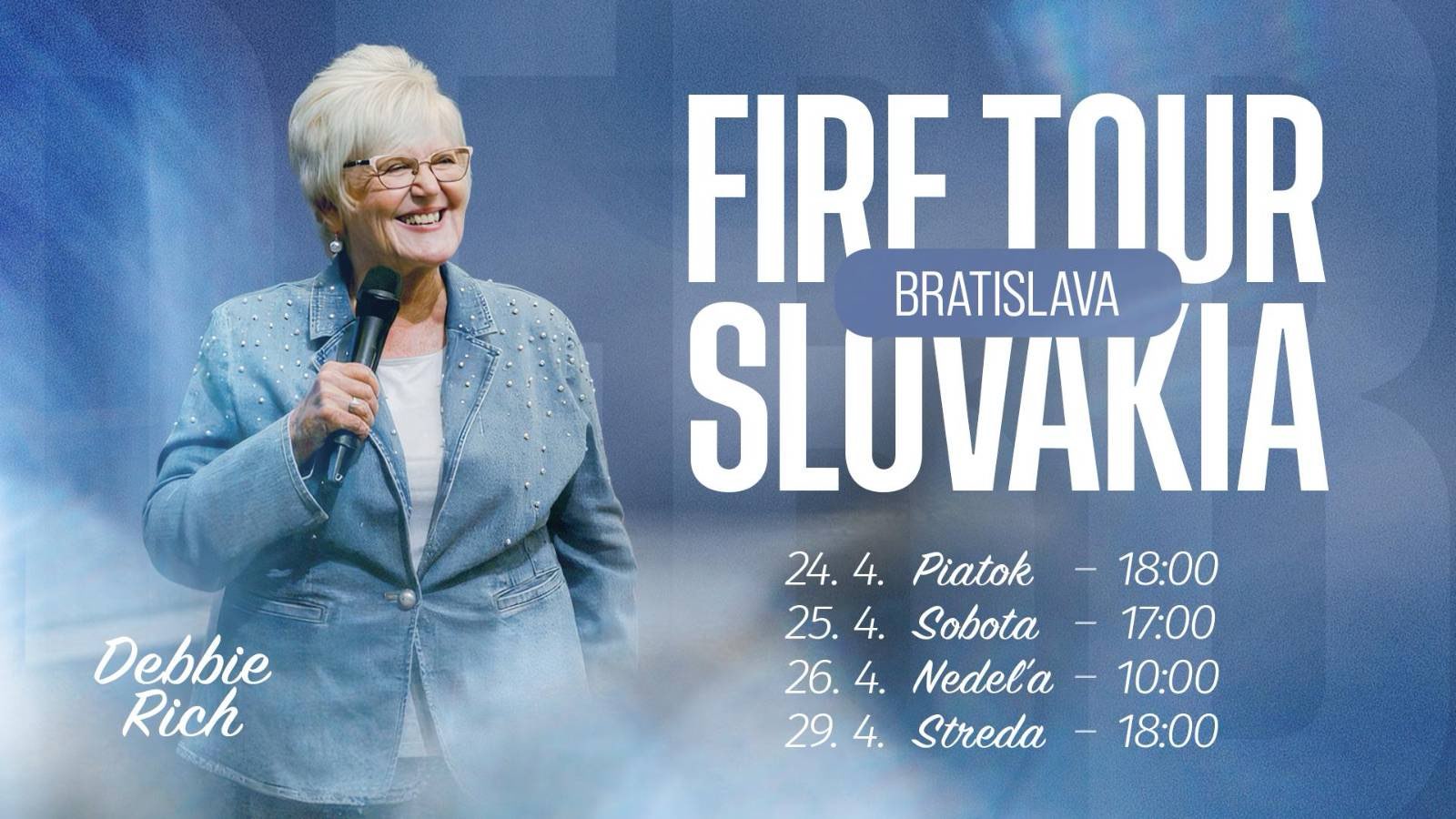 * Tento týždeň je bohoslužba v stredu zrušená. Program je v piatok až nedeľu s Dr. Debbie Rich.